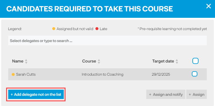 One of the main reasons why you might want to add a delegate that does not have an open assignment to the course is because they will be due for renewal soon, but they have not yet hit the renewal period.