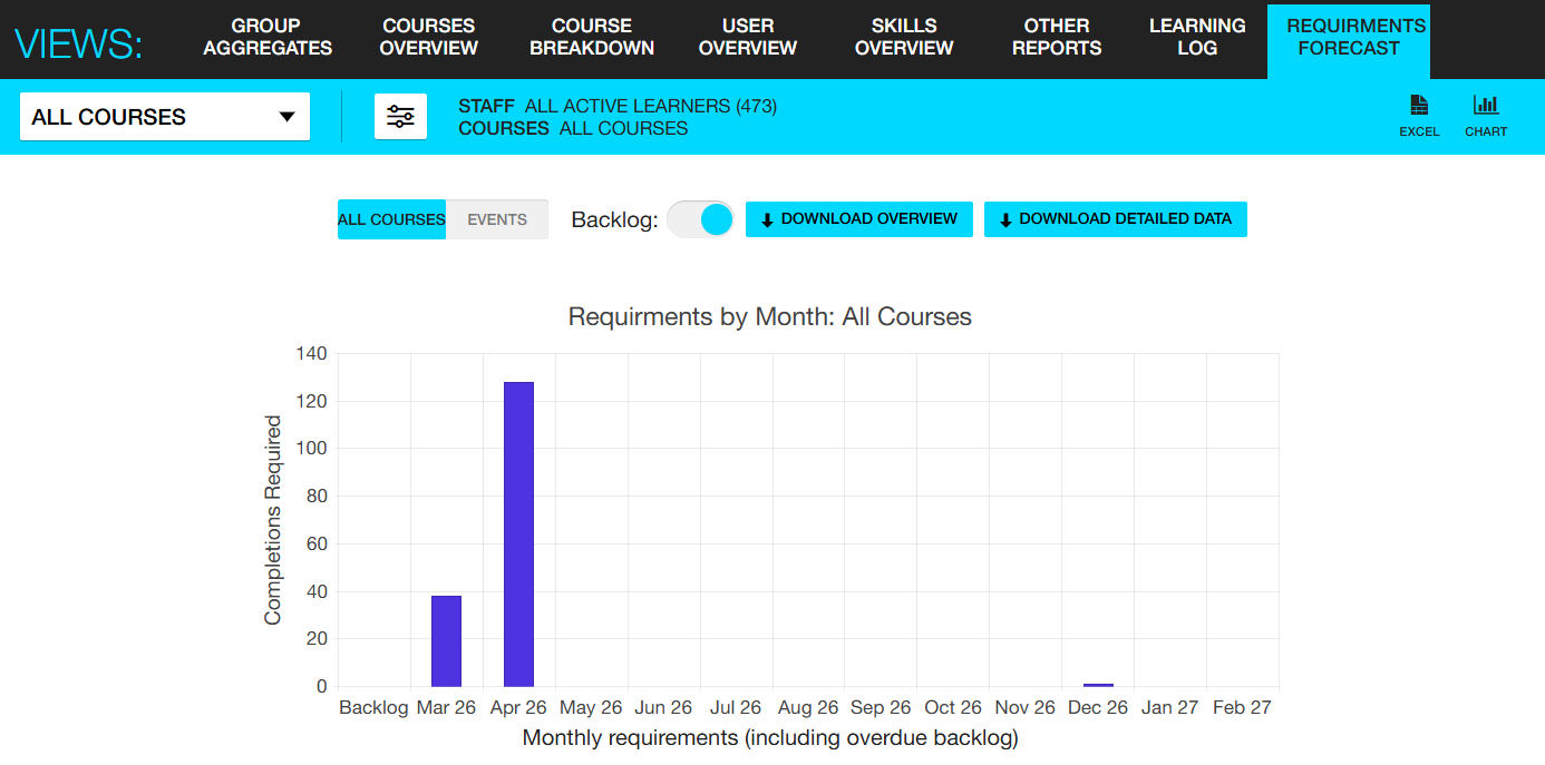 This report will help you to identify when there will be highs and lows in training activity throughout the year.
