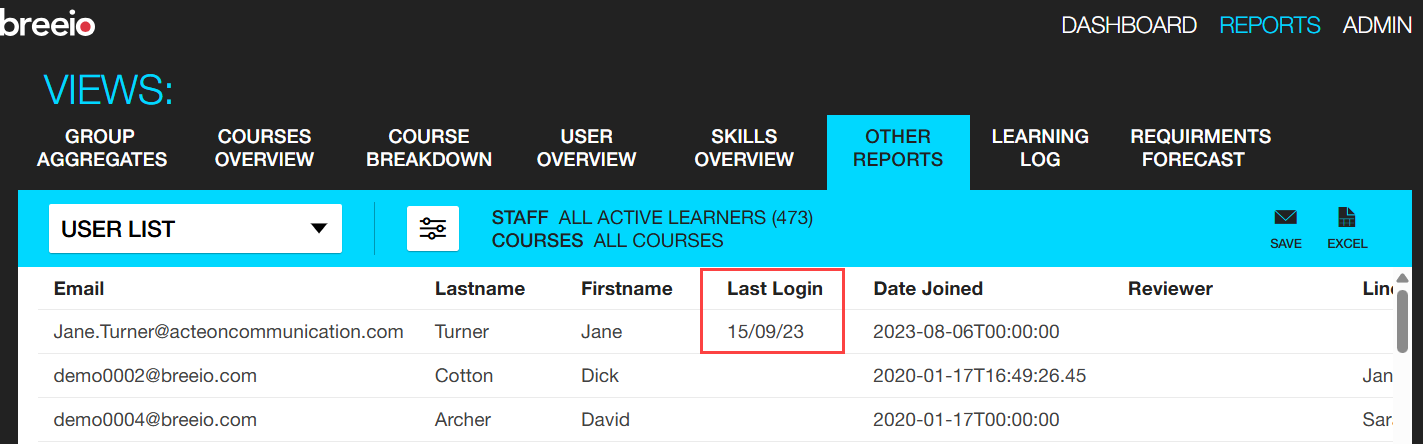 2) You can find the date a user last logged in the User List Report - find this in the Other Reports area in the Users section: